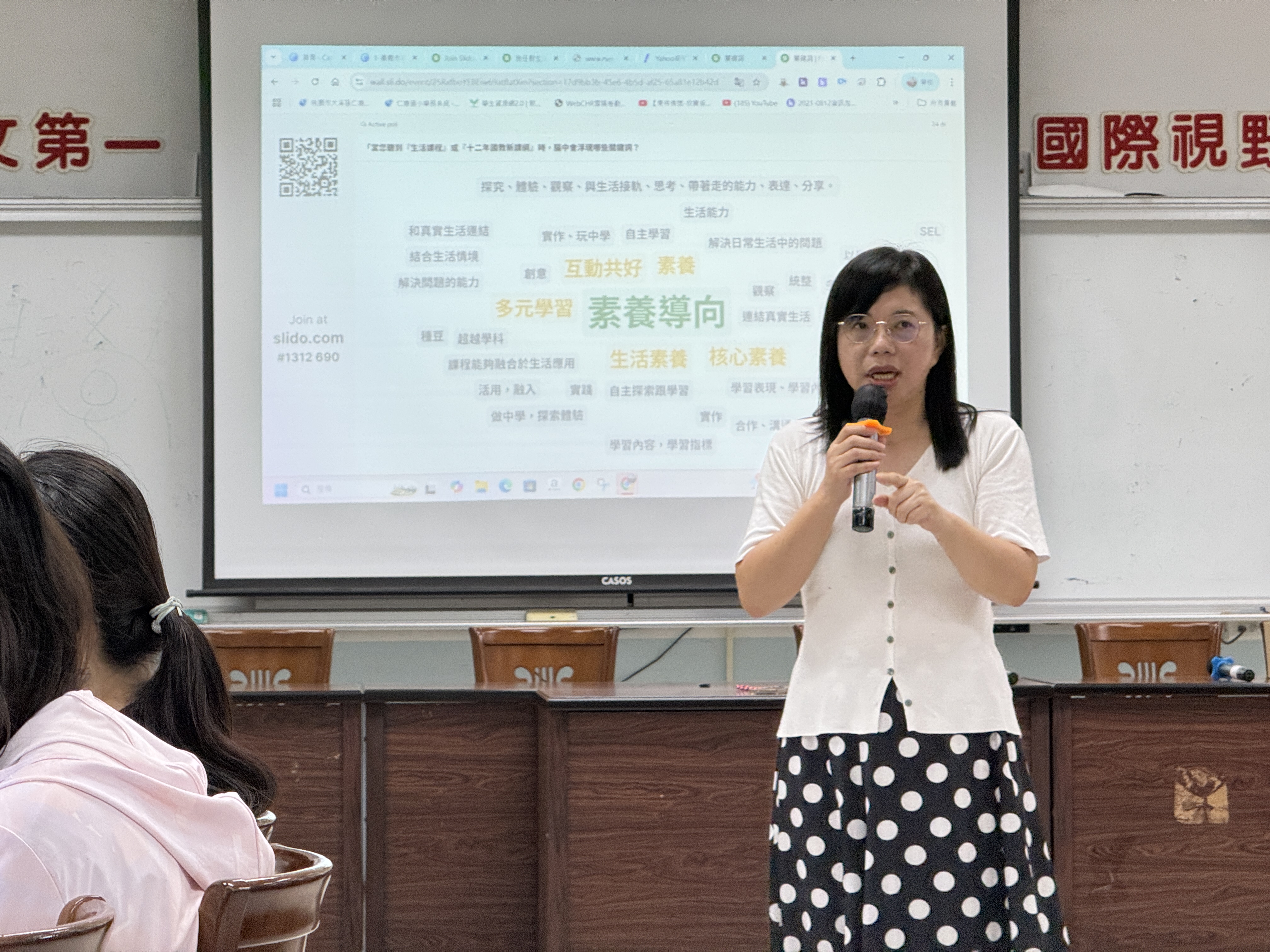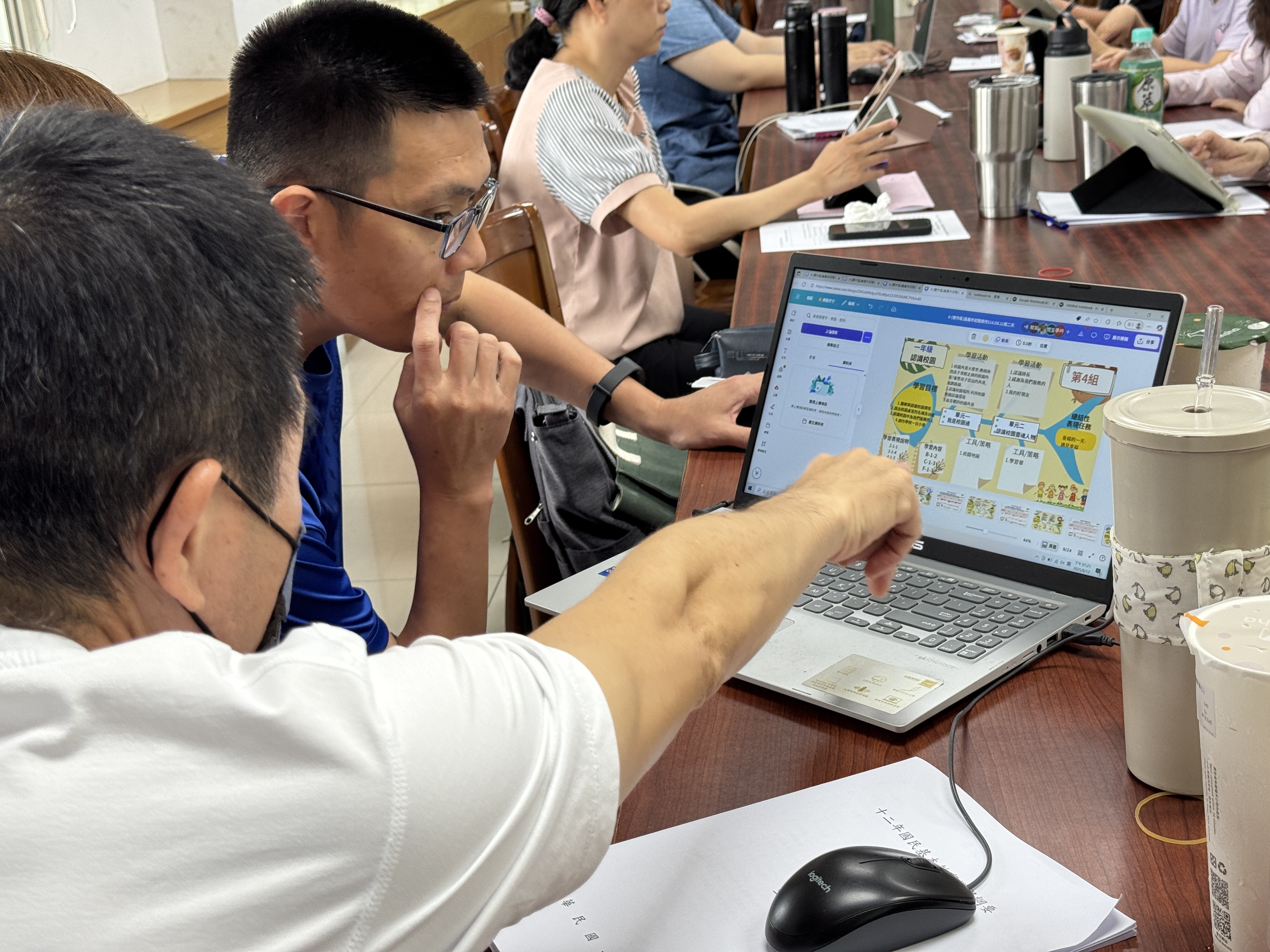 研習中,講師帶領教師深入閱讀生活課程領綱,並以分段摘要方式掌握課程的基本理念與教學圖像。生活課程強調從兒童的特性出發,透過探索、體驗、發現問題與自我省思,培養學生的生活能力與素養。課程屬性涵蓋自然科學、社會、藝術與綜合活動,強調統整性與生活連結。教師圖像則描繪出能陪伴、引導、創新與合作的教學者角色,鼓勵教師在課程中發揮創意,設計貼近學生生活的主題活動,讓學習充滿動能與意義。