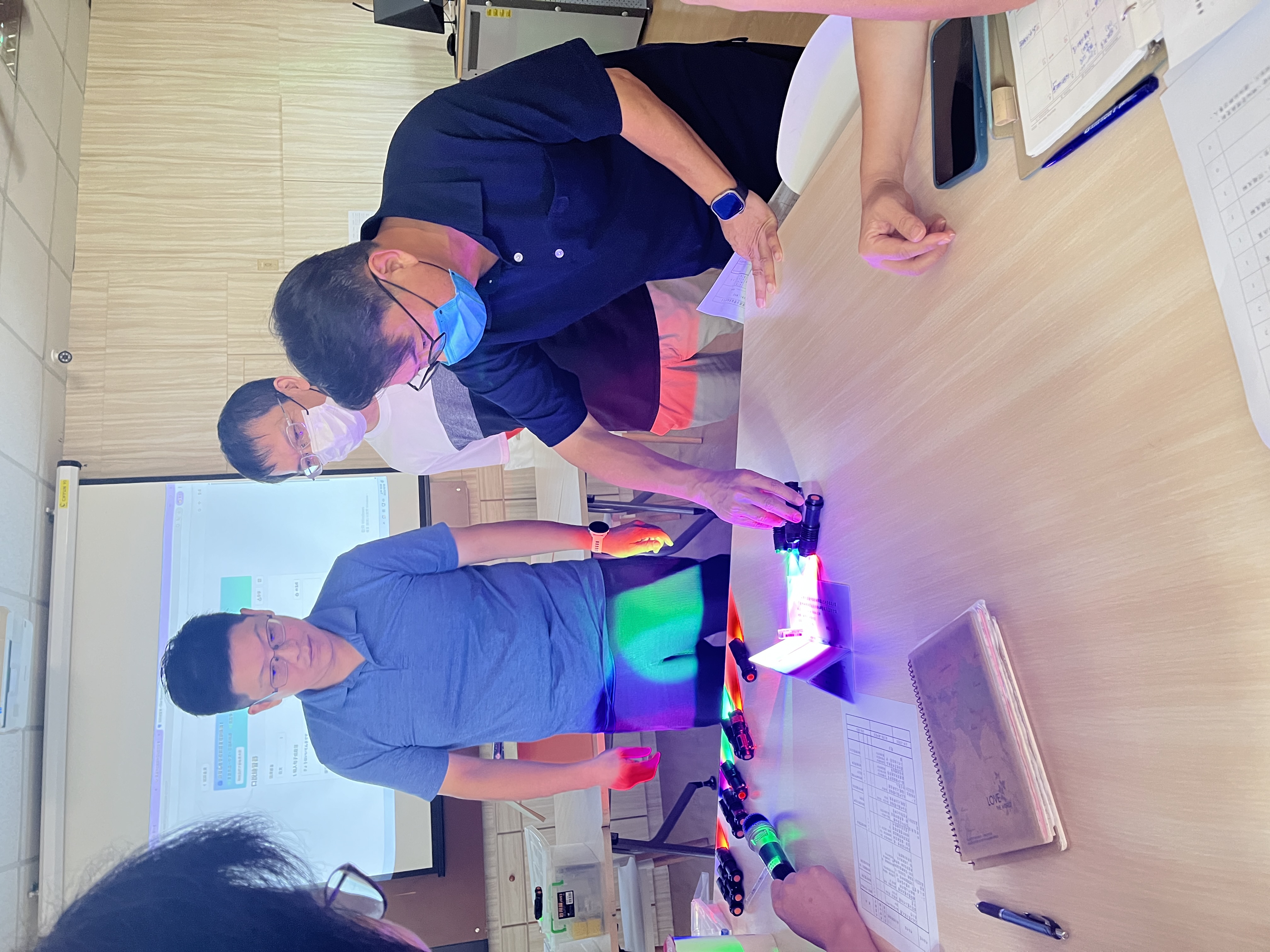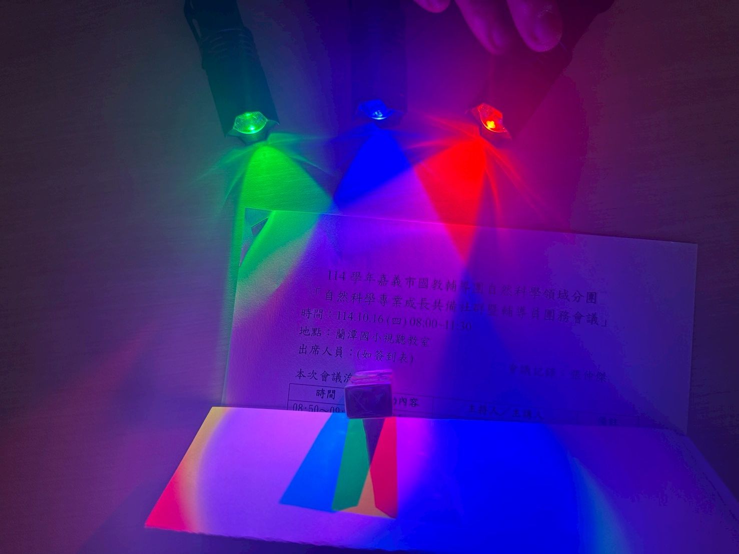 課程內容:隨著十二年國教課綱推動,素養導向的教學模式日益受到重視,尤其在自然科學領域,如何將抽象概念轉化為具體且易於理解的教學活動,成為教師的重要課題。「光的三原色」為生活中常見且具啟發性的科學現象,透過實作與探究教學,不僅能提升教師對光學原理的理解,也能讓學生在動手操作中內化知識,達到素養導向學習目標。