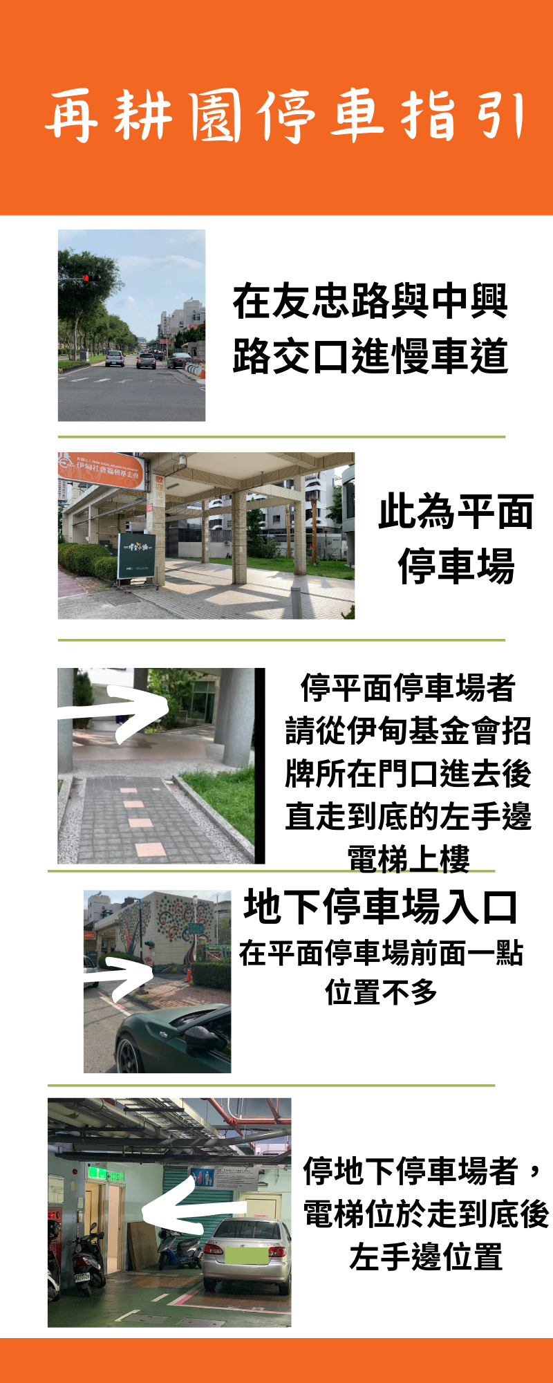 停車事項:研習場地於嘉義市再耕園(嘉義市西區玉康路160號),停車資訊請參考下方連結圖示。