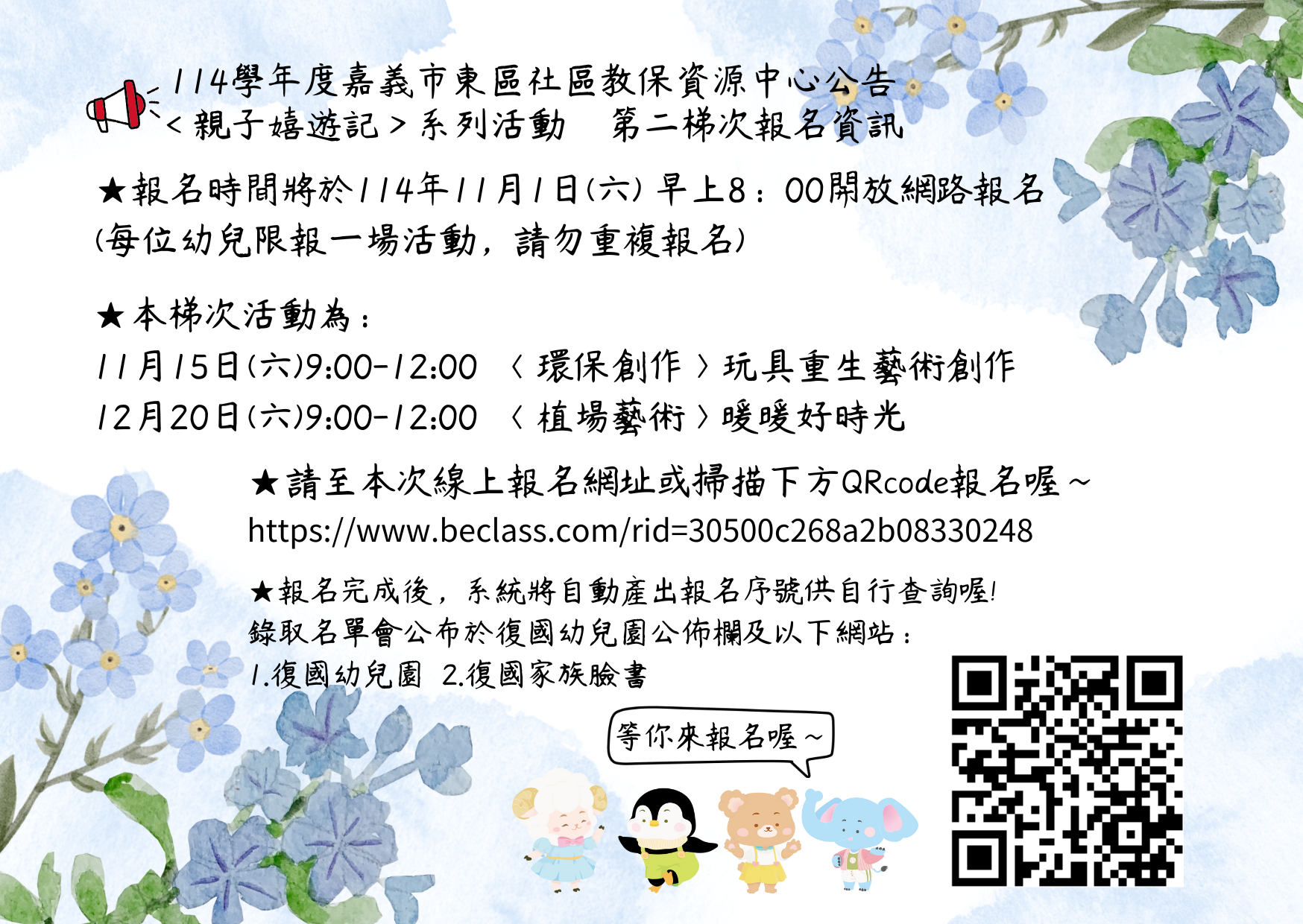 📢114學年度社區教保資源中心< 親子嬉遊記 > 系列活動📢