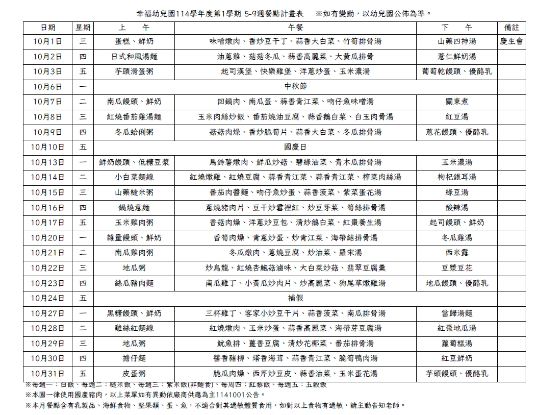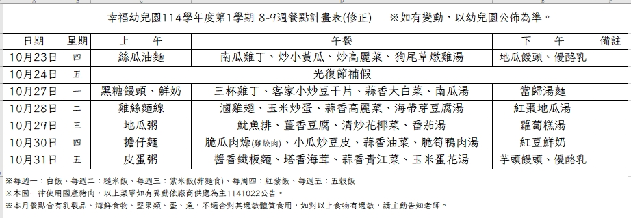 其餘供餐流程與衛生管制均維持正常,請家長與寶貝安心。